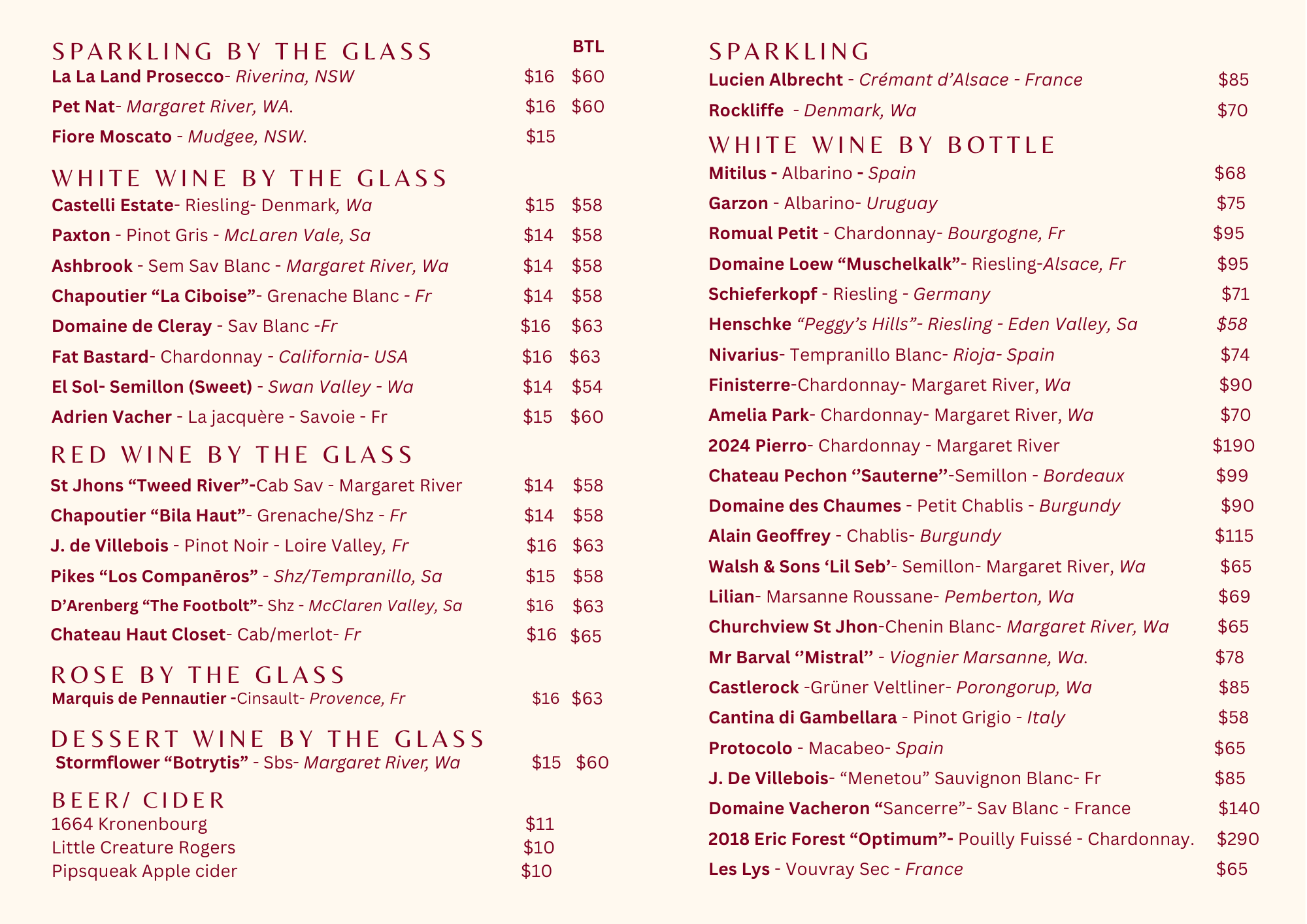 Our wine selection changes regularly, and our menu is updated accordingly. However, some new arrivals or sold-out items might not be reflected on the list.